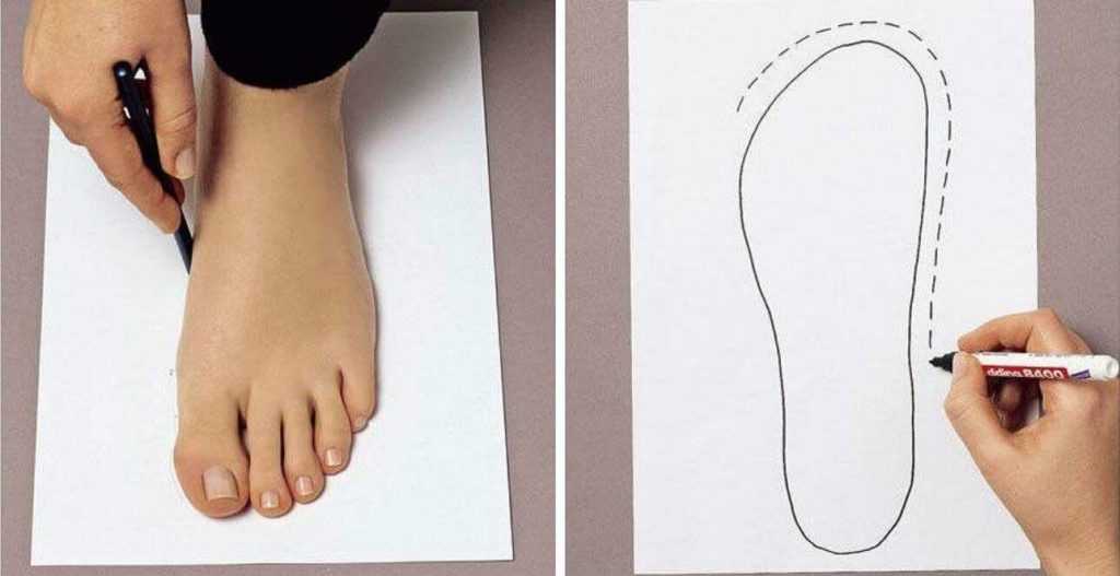- Чтобы не ошибиться в размере, нужно стать босиком на рисунок стопы.
