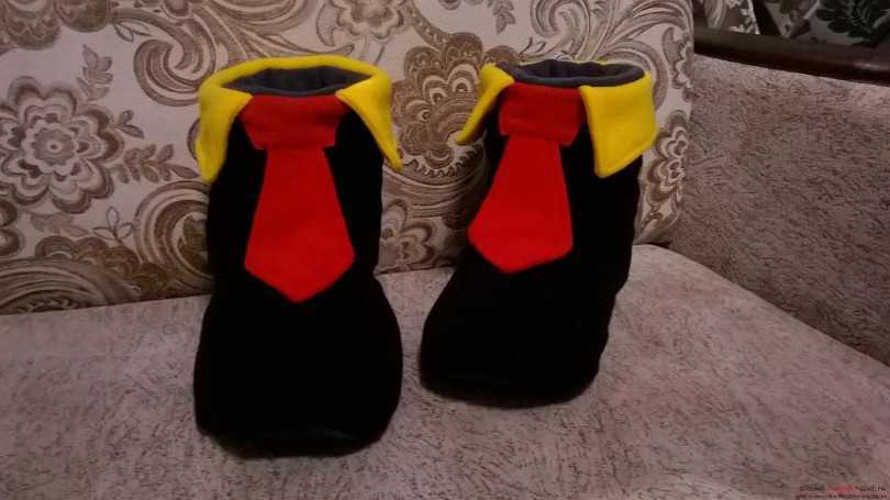 По такому же принципу сшиваем внутренний тапок из черного флиса: