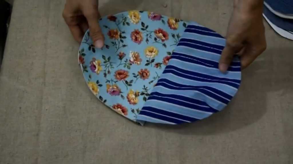 Прошиваем, отступив на 1 см. от края. Если вы делаете верх с поролоном – складываем верх так: 1 дет. из ткани, вторая – тоже, и сверху – поролон.