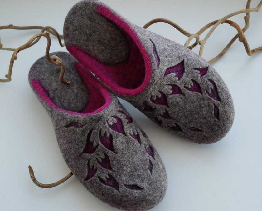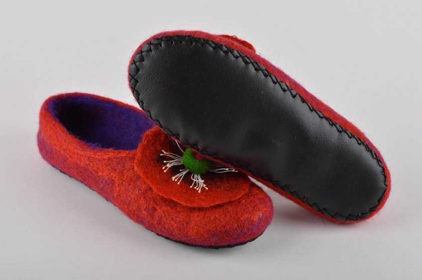 Выше был описан способ создания тапочек из готового войлока, который используется как ткань. Как оказалось, сшить тапочки своими руками быстро и просто, а выкройка легко строится даже начинающими рукодельницами. Однако те мастерицы, которые владеют мастерством сухого или мокрого валяния, могут выполнить изделие и в такой технике.