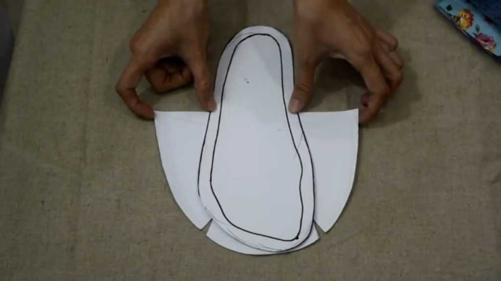 Обведя по контуру подошву ноги и не добавляя припуски, вы получите выкройку подошвы. Которую так же необходимо перенести на выбранную для данных целей ткань.