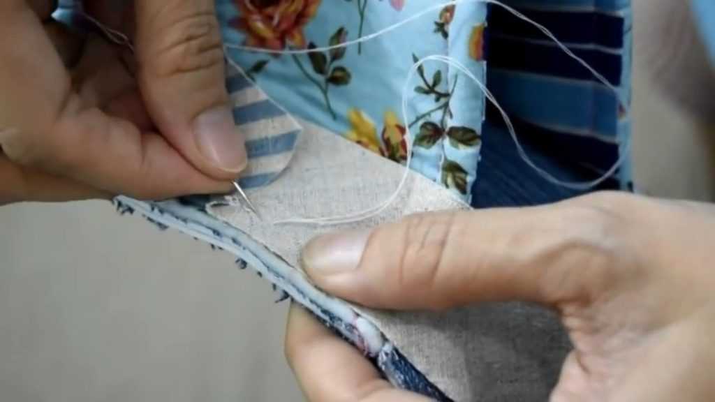 Вставка картона и ватина производится из расчета, что картон должен быть обращен вниз, а утеплитель вверх. Оставшуюся незашитой часть через край зашиваем вручную. Пригодятся и навыки создания потайного шва.