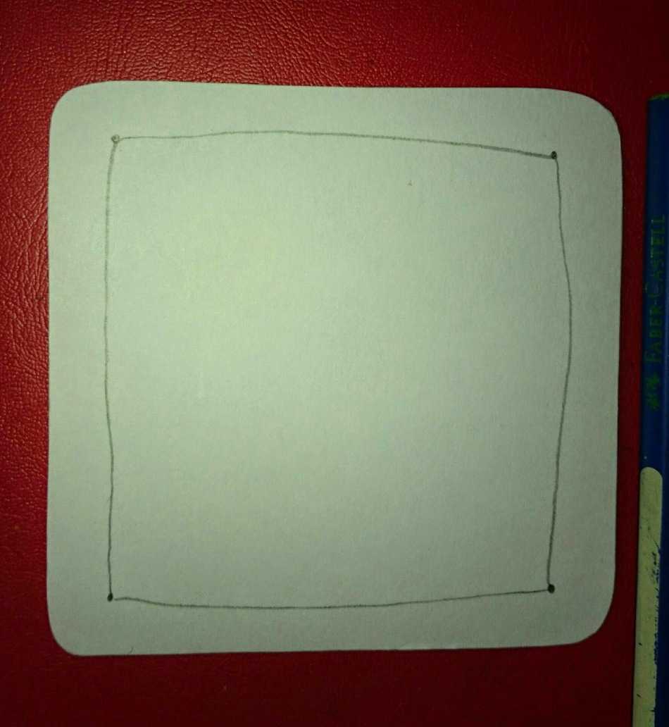 - Рисуем строки: ставим четыре точки карандашом по углам плитки, немного отступив от края. На карандаш стараемся не нажимать, чтобы позже можно было легко избавиться от линий.