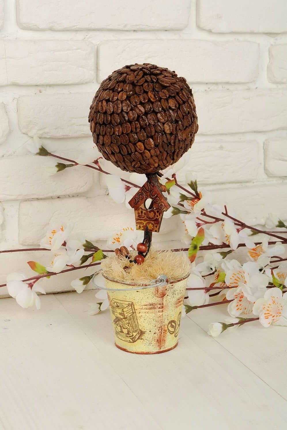 Топиарий, сделанный из кофейных зерен и украшенный монетами, станет наилучшим подарком коллеге