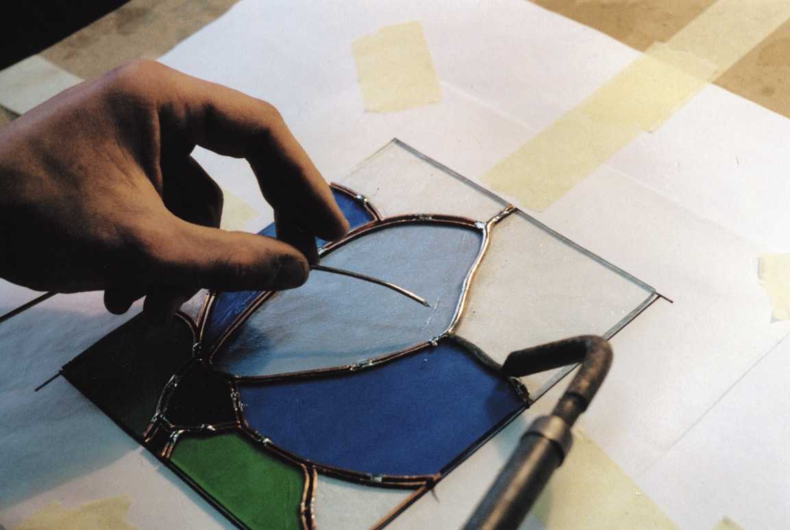 Когда все цвета уложены, наклеивается свинцовая лента для обрамления.