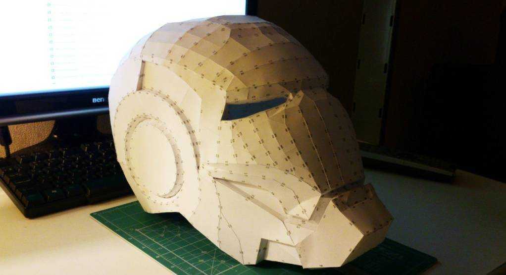 Первым делом нужно узнать, как сделать шлем Железного человека. Для этого нужно распечатать схемы шлема и вырезать все возможные детали.