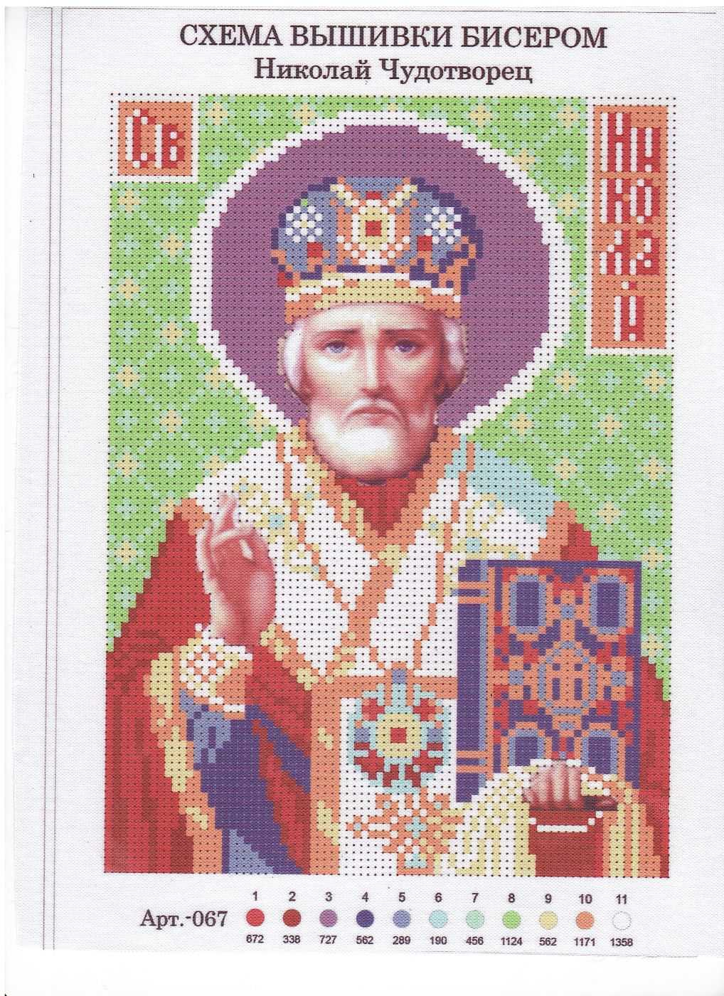 Икона Николая Чудотворца охраняет покой моряков, путешественников и прочих. Часто у владельцев автомобилей можно заметить в салоне его портрет. В этой иконе преобладают золотые и оранжевые цвета. Ее можно разместить в машине, если она небольшого размера. На рисунке 2 представлена схема алмазной вышивки иконки Николая Чудотворца.