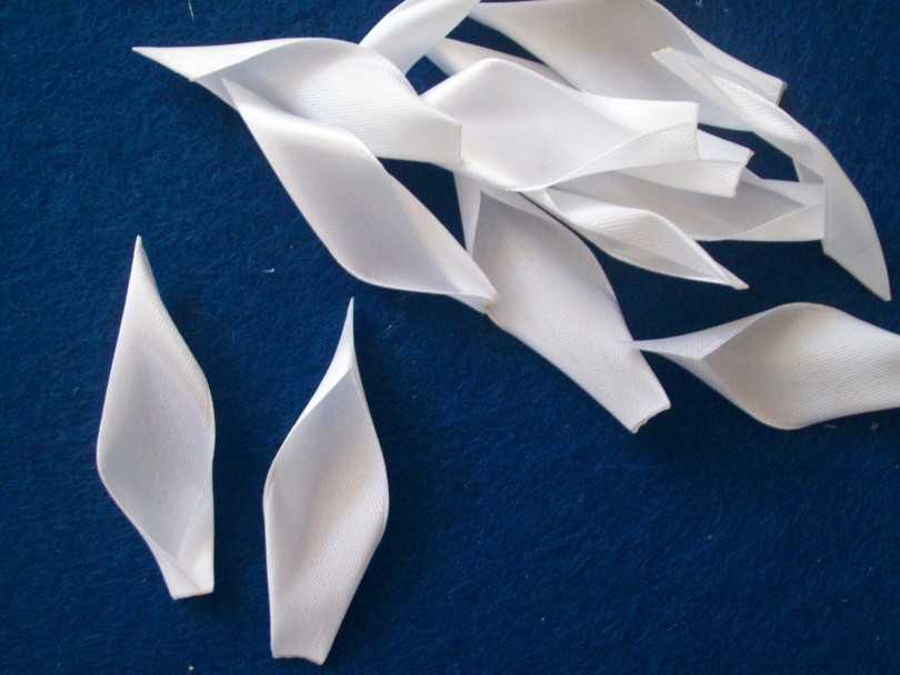 - первым делом заготавливается 50 отрезков по 11 сантиметров ленточки нужного цвета;