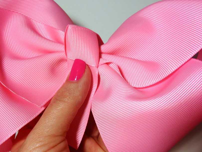 Мы рассмотрели как делать совсем маленькие бантики, теперь давайте посмотрим, как аккуратно делать большие. Их применение тоже разнообразно: можно отделать одёжку малышей, украсить игрушки, сделать заколки и украшения и много другое.