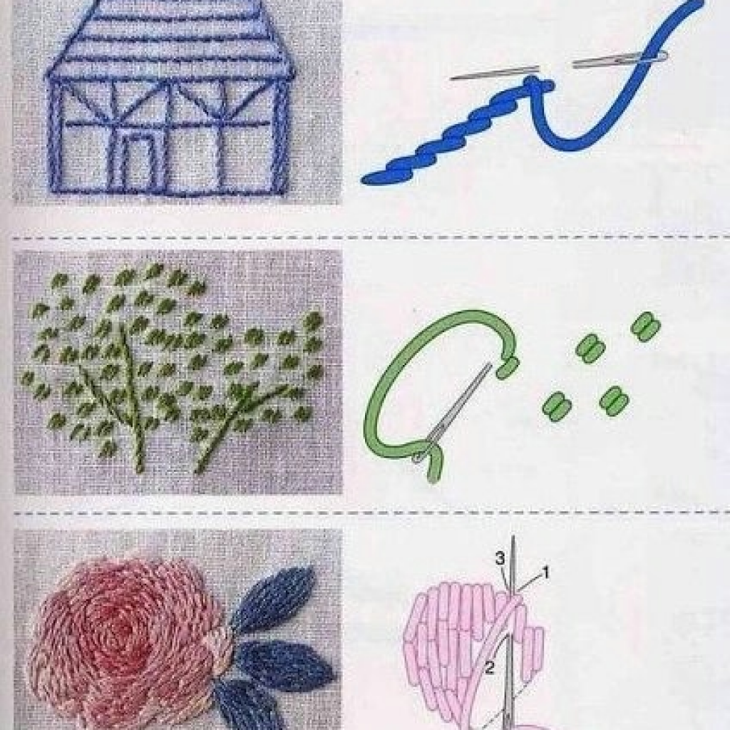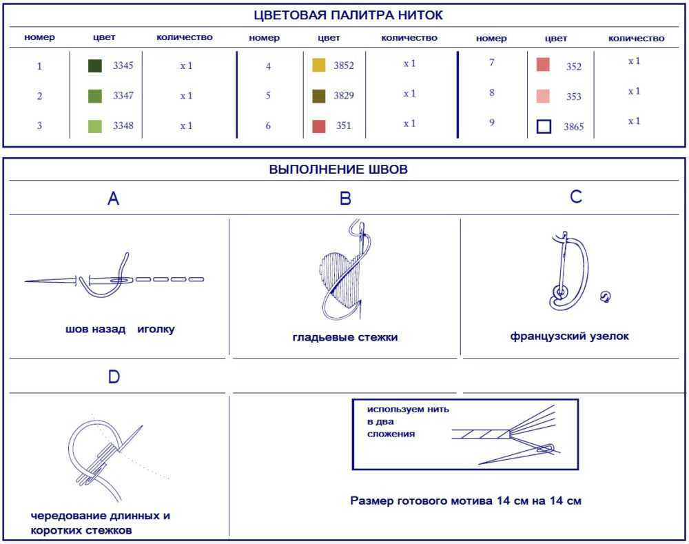 Минимум используемых легких швов. Скачать схему вышивки гладью