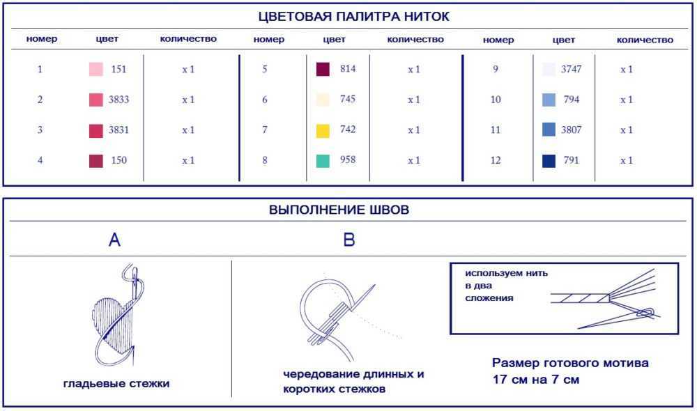 Расход количества ниток в таблице рассчитан исходя их размера готового мотива 16 на 16 см.
