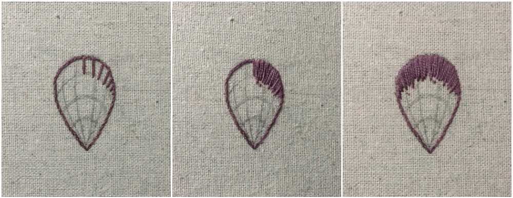 Во Владимирской глади этот вид шва используется для заполнения пустот листьев, а также для выделения очень маленьких деталей.