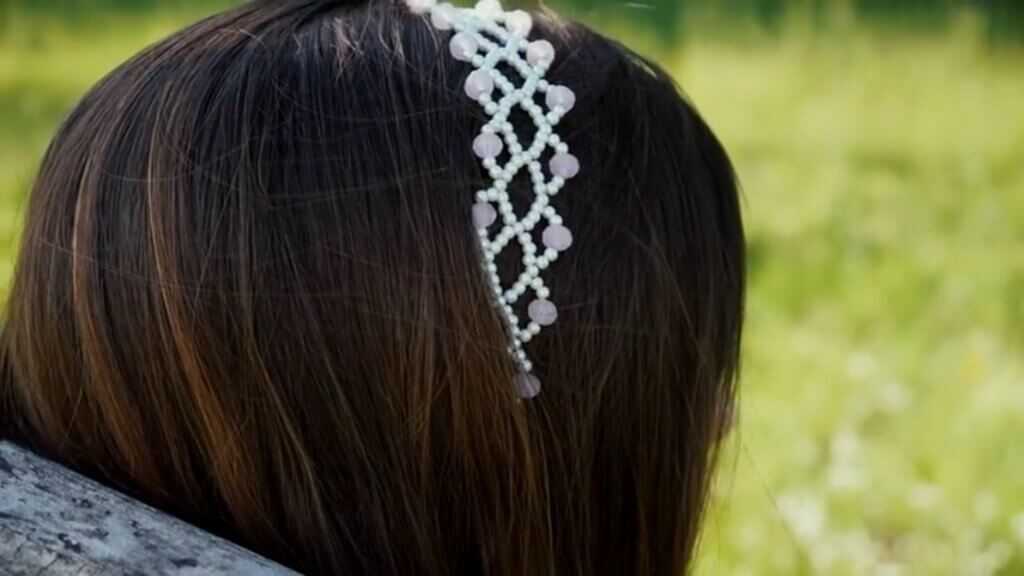 Посмотрите, какой красивый ободок из бисера получится на тонкой основе: