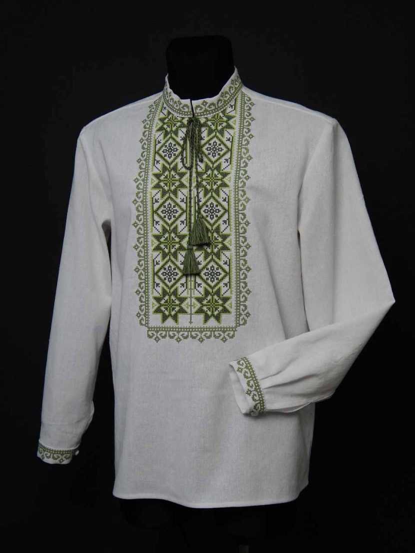 Особенностью мужской вышиванки является не только крой, но и традиции украшать ее геометрическим узором. Традиционно вышивкой декорируется воротник, манишка и манжет рукава.