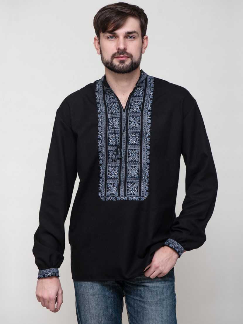 Черная вышиванка с серой вышивкой отлично подходит для повседневной носки