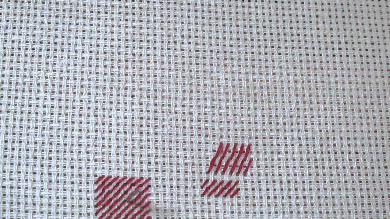 С лицовой стороны работы игла вводится в отверстие канвы и нить вытягивается до тех пор, пока останется лишь небольшая петелка на поверхности.