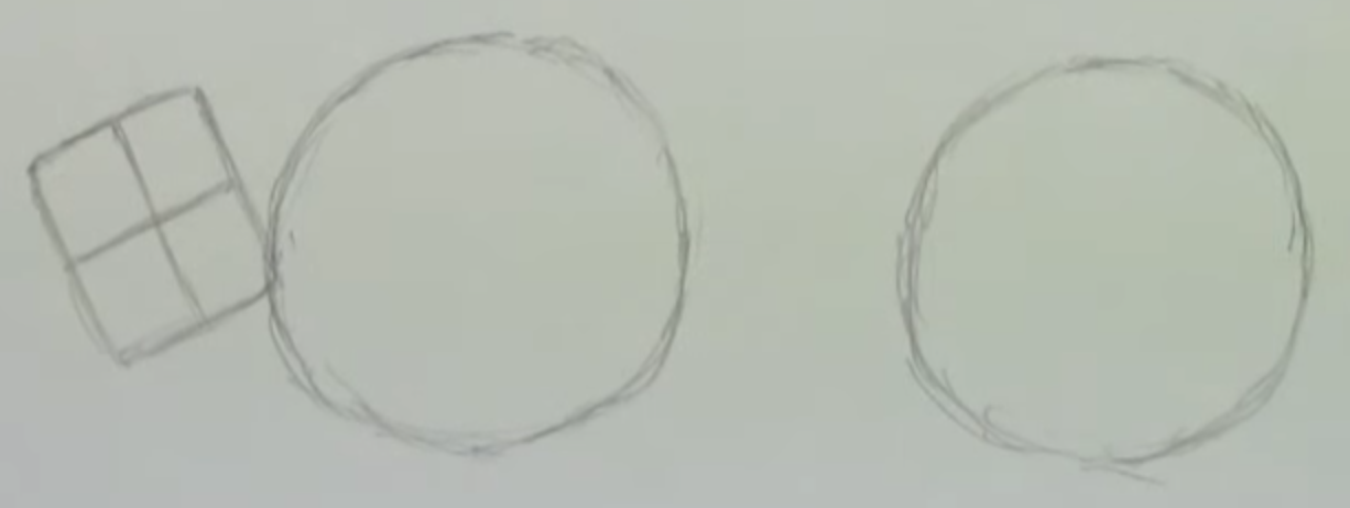 . Начнём с разметки круга головы. Можно пользоваться круглой формой для этого дела, но я предпочитаю сделать много повторных круговых движений, постоянно корректирую правильную форму круга. В итоге получается довольно правильная форма круга без вспомогательных средств.