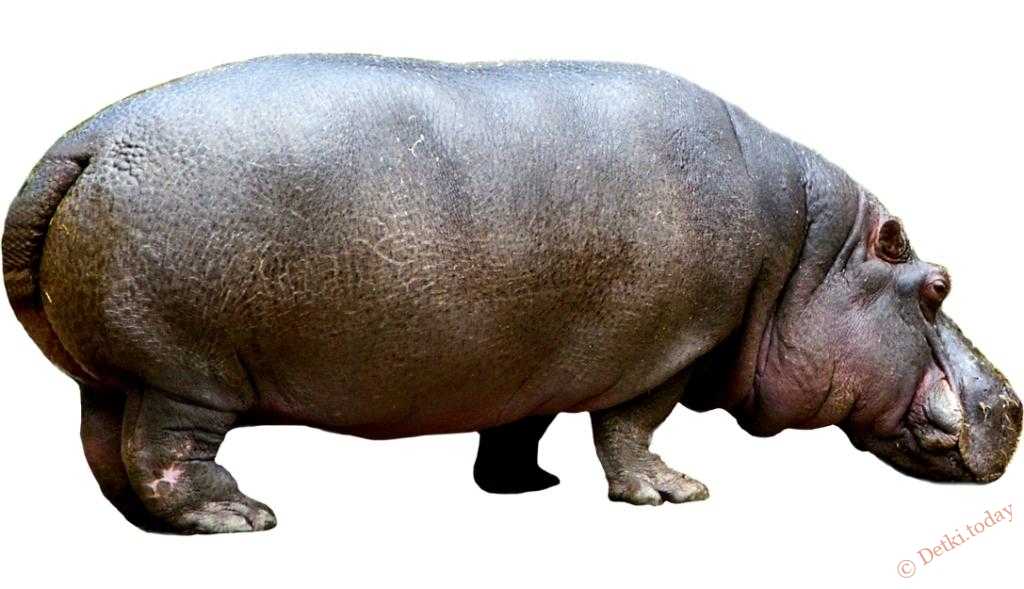 Картинки для детей с бегемотом на белом фоне, к сожалению, не передают всю мощь африканского животного. А оно просто огромное. Бегемотик может достигать 4,5 м в длину и весить около 4 т! Тело гиганта покрыто толстой серой кожей, под которой находится еще более толстый жировой слой. Чтобы «поддерживать фигуру», бегемотик в день съедает 70 кг водорослей и растений.