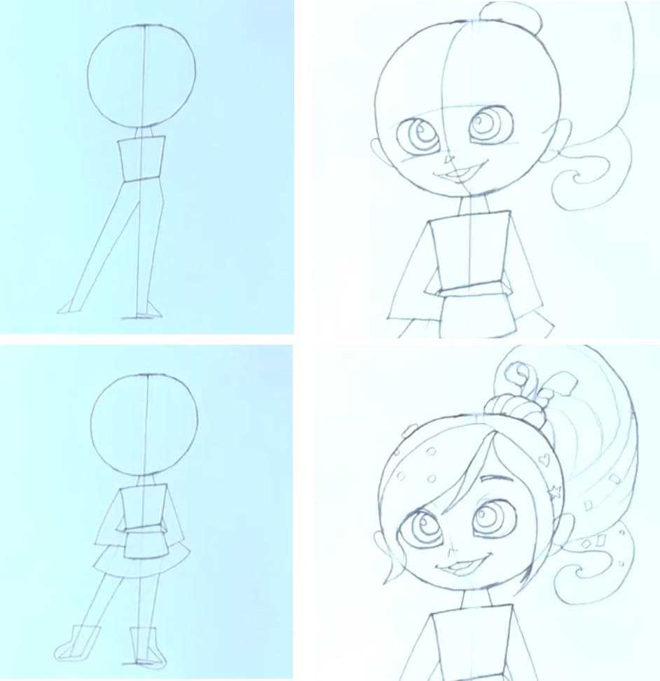 Вместо платья, как правило, рисуют школьную форму. Однако это вовсе не обязательно. Главное — это геометрия форм. Маленькому ребенку будет достаточно сложно справиться с подобным заданием. А вот подростки получают массу удовольствия, создавая подобные картинки и даже небольшие комиксы.