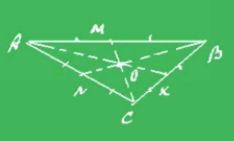 Измерим каждую сторону и поделим пополам. К середине каждой стороны проведем линию из противоположного угла. Отметим точку пересечения трех полученных линий.
