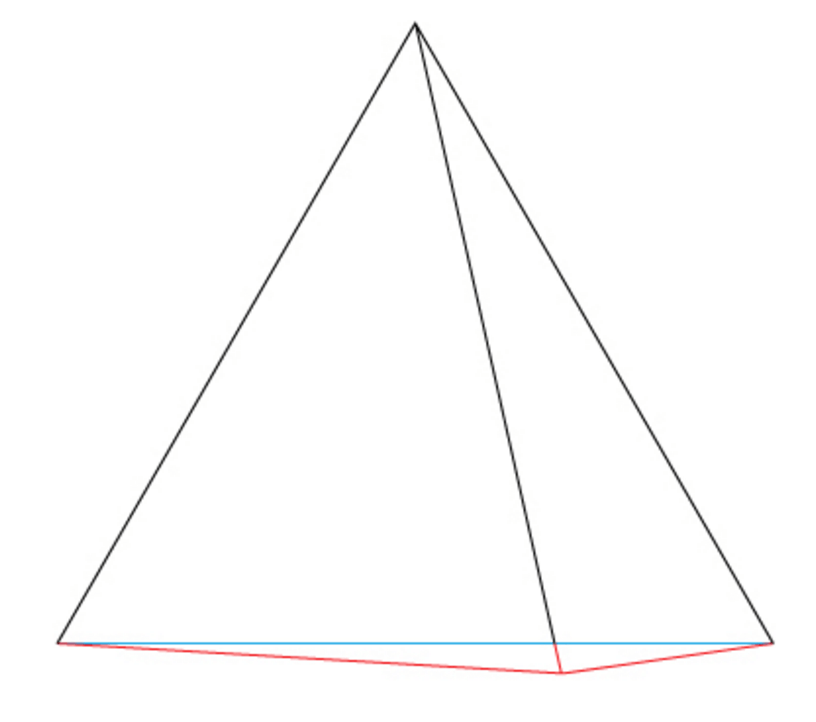 2. Наклоните стороны пирамиды вниз, сохраняя угол между ними одинаковым и сделав среднюю линию чуть длиннее.