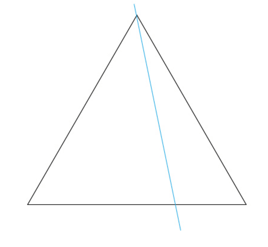 Рисуем диагональную линию через вершину треугольника. Степень наклона этой линии отвечает за разворот пирамиды.