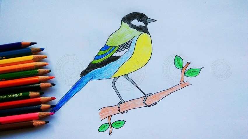 Теперь поговорим о том, чем можно разукрасить ваш рисунок. Главное использовать яркие карандаши и задать правдоподобное оперение птицы. Мы уже говорили, что здесь нужно будет использовать желтый, голубой, зеленый, салатовый, синий, черный, а также разные оттенки серого. Конечно, передать полностью цветовую гамму нам вряд ли удастся, но все равно у нас получится правдоподобный рисунок.