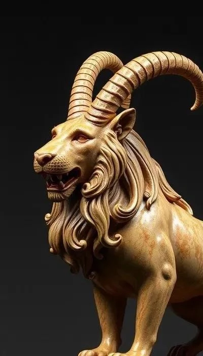 Голова льва символизирует силу, власть и ярость. Она часто изображается с открытой пастью, демонстрирующей острые зубы и мощный рык. Тело козы, с рогами и копытами, олицетворяет плодородие и упрямство, но также и связь с дикой природой. Хвост змеи, ядовитый и гибкий, представляет собой опасность, коварство и способность к внезапному нападению.