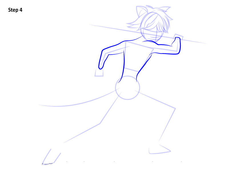 - Теперь, основываясь на ваши набросанные линии, нарисуйте его шею и плечи.