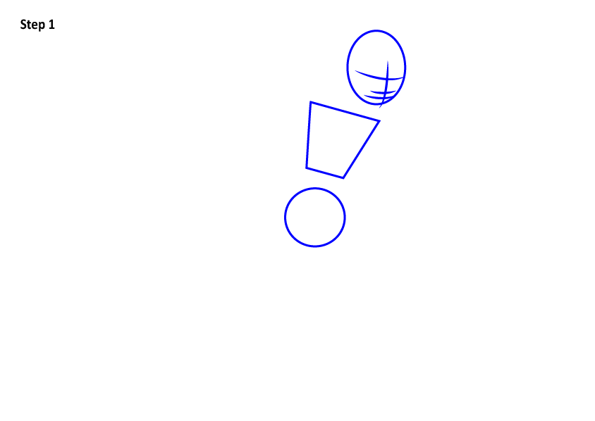 - Сделайте каркас: круг – голова, трапеция, положенная на меньшее основание – грудная клетка, еще один круг – бедра.