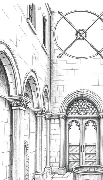 Внутренний двор – сердце замка. Внутренний двор был центром жизни замка, где располагались жилые помещения, мастерские, склады и другие постройки. Двор мог быть прямоугольным, квадратным или неправильной формы, и часто был окружен галереями или аркадами. В центре двора обычно находился колодец или источник воды, обеспечивавший замок водой в случае осады.