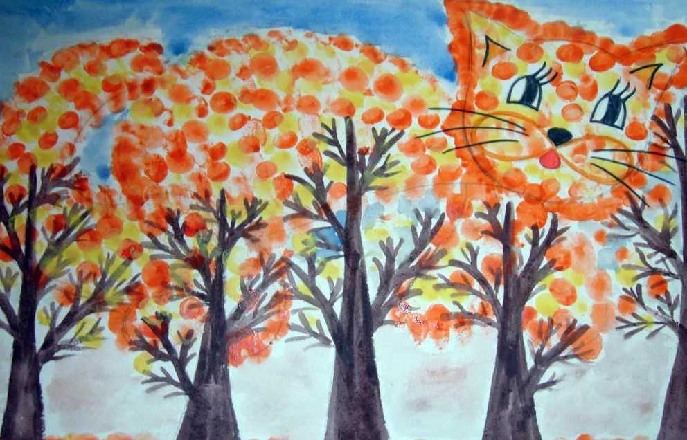 Идея для самых маленьких: кот из желтых крон деревьев