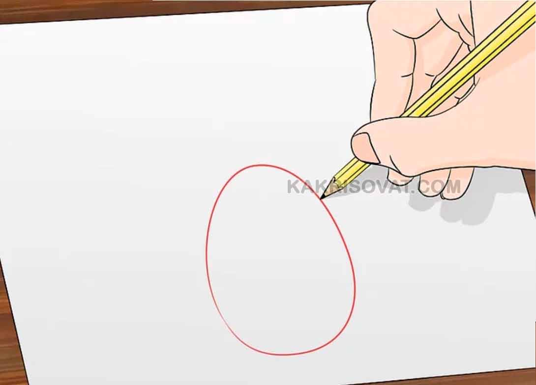 Нарисуйте овал или же ребенку будет понятнее, если вы предложите повторить ему форму яйца. Форма должна быть вверху уже, чем внизу.