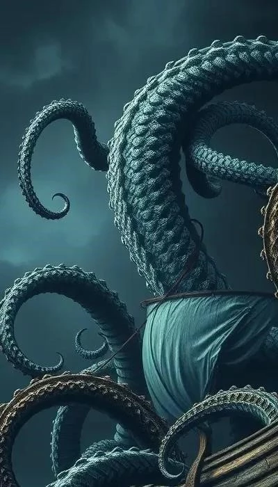 Легенды гласят, что кракен мог подниматься из глубин, чтобы атаковать корабли, опутывая их своими щупальцами и утаскивая на дно. Моряки верили, что он способен создавать мощные водовороты, способные поглотить даже самые большие суда. Скандинавские рыбаки опасались его больше, чем штормы.