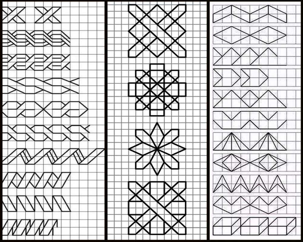 Используя обычную бумагу в клеточку, можно сделать простые повторяющиеся рисунки, рисунки шахматной доски. Можно объединить квадраты, чтобы делать большие фигуры и разделять квадраты на треугольники и меньшие квадраты и даже на восьмиугольники, чтобы делать всевозможные интересные изображения.