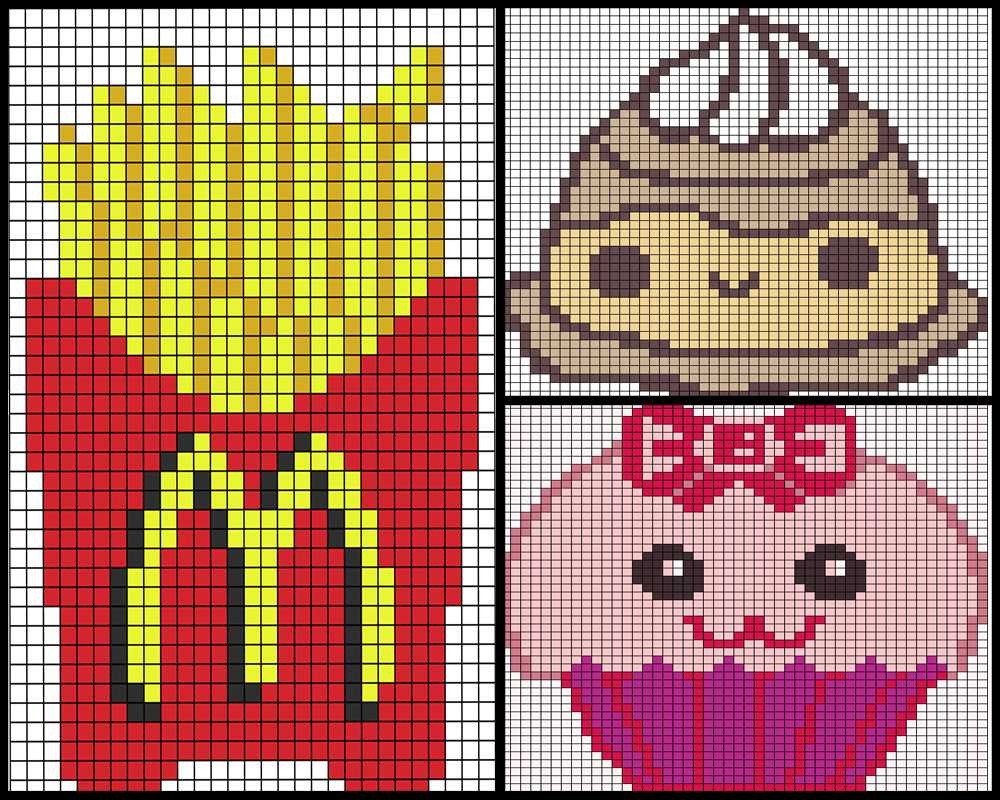 - изображения еды, например, картошки фри, бутылки или стаканчика с напитком, пирожные и кексы и т.д.