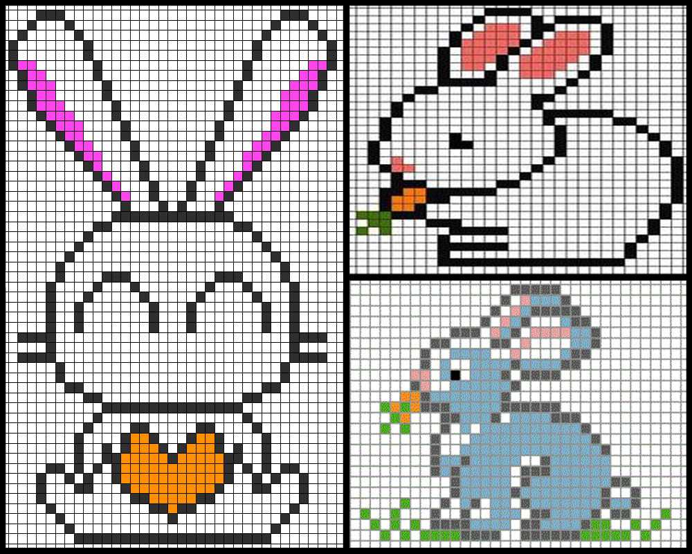 Такие картинки для срисовки по клеточкам достаточно популярны, так как копировать их не сложно. К небольшим симпатичным можно отнести: