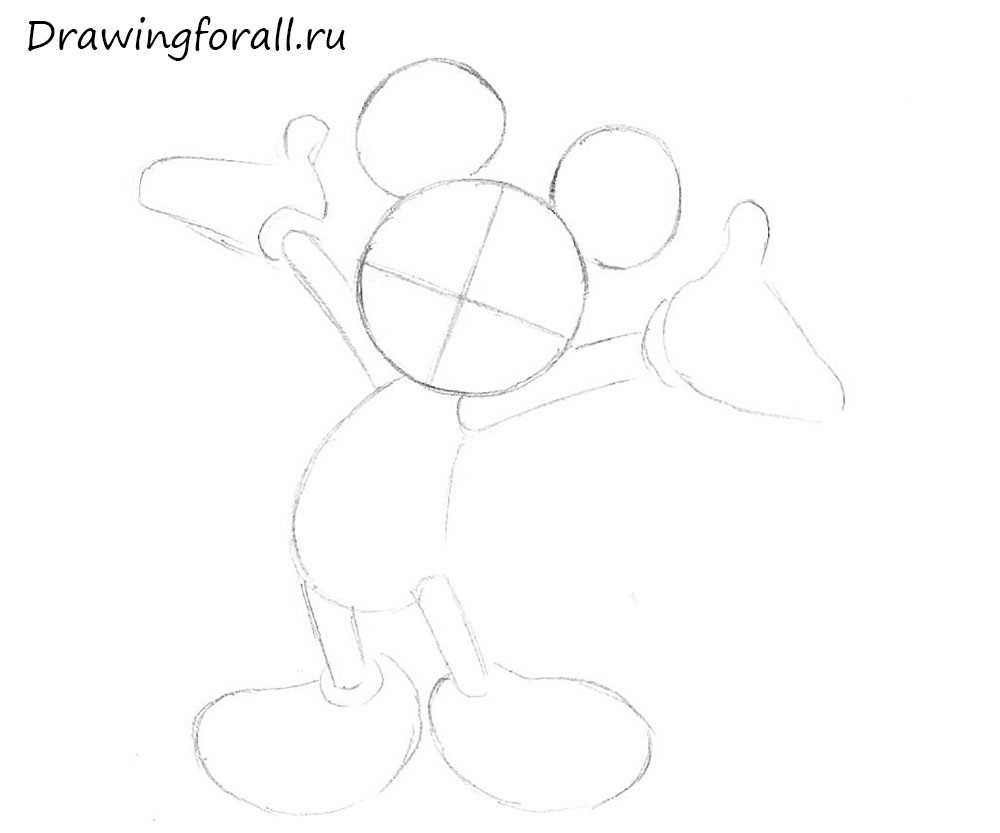 Нарисуйте Микки руки и ноги.