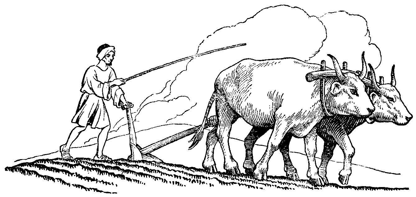 Бык пашет землю: