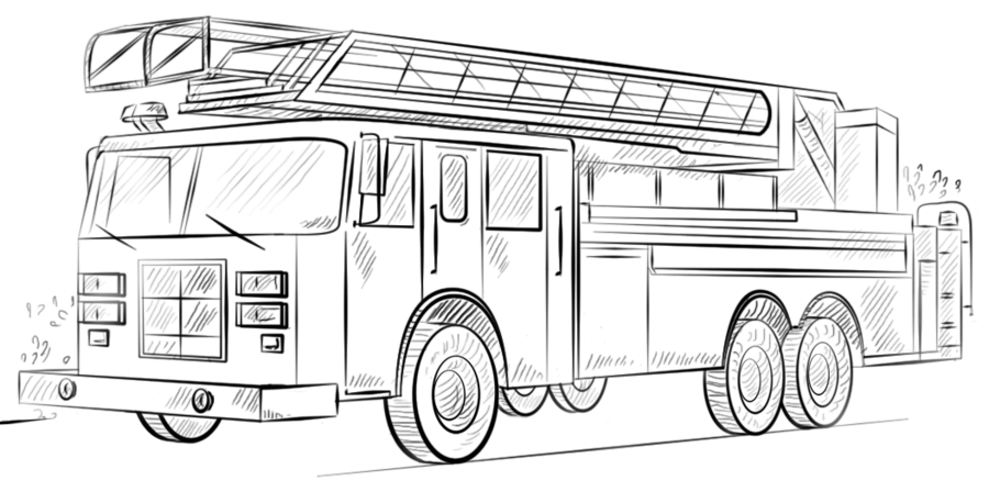 Пожарные машины бывают разными, есть автолестницы, а есть автоцистерны, также еще есть пожарные гидроподъемники. В принципе нарисовать любое из этих транспортных средств несложно, так как они в большинстве своем имеют ровные линии и прямые углы.