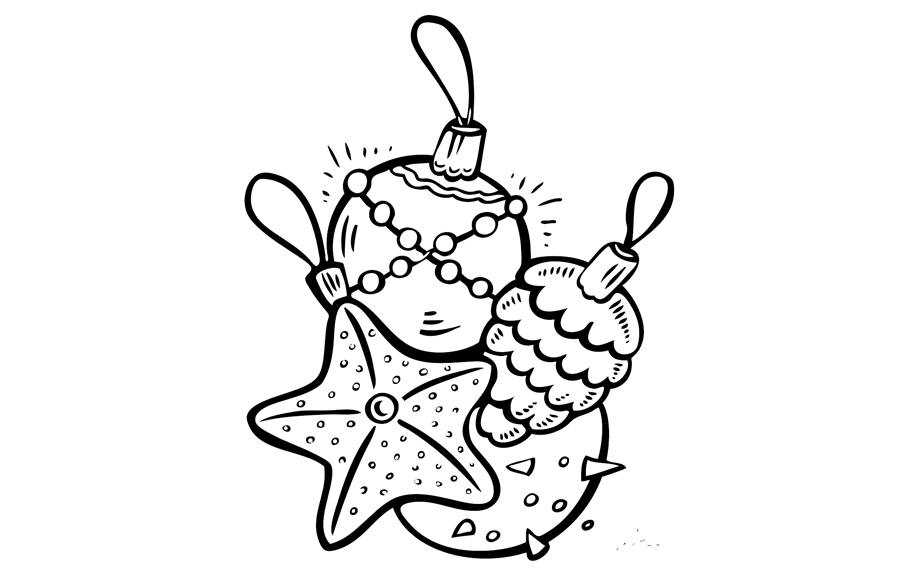 А можно поручить чаду создать яркие елочные украшения – раскрасить большие и маленькие шары, шишки, свечи и снежинки.