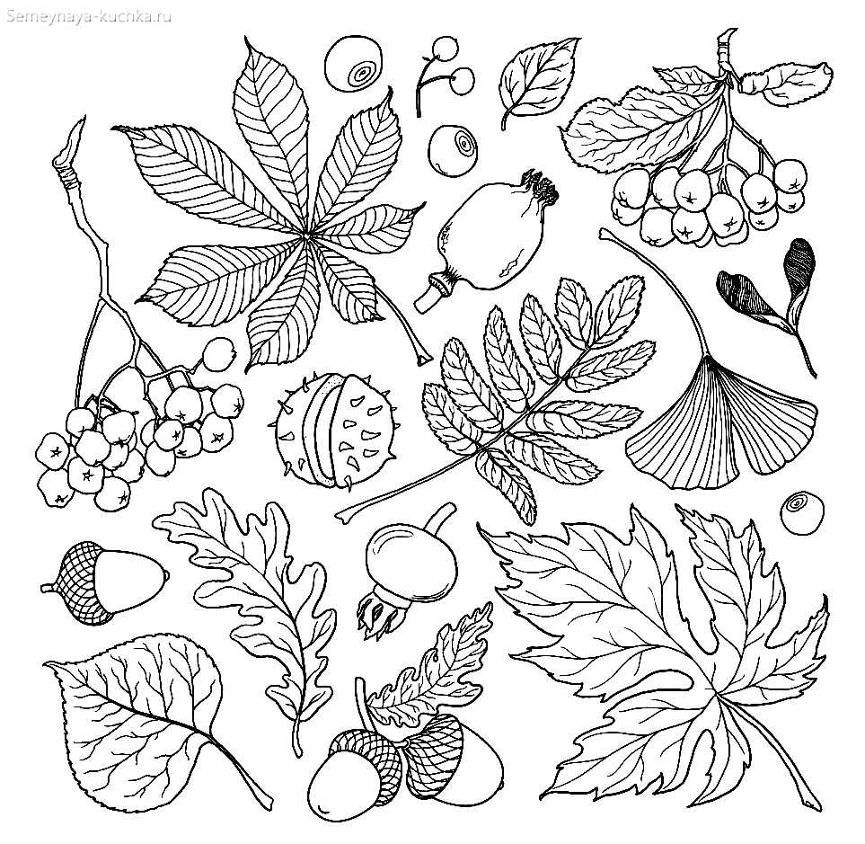 Раскраска ЛИСТЬЯ (44 картинки с осенними листочками).
