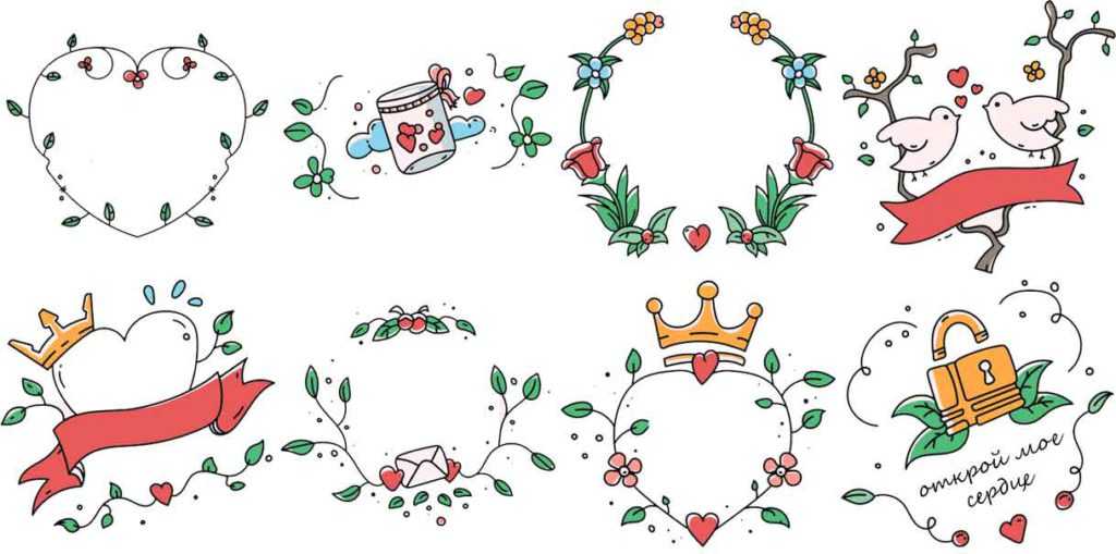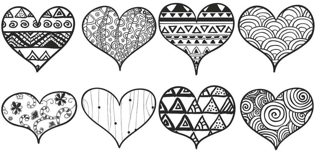 Сердечки, глазки, колечки – картинки черно белые для распечатки