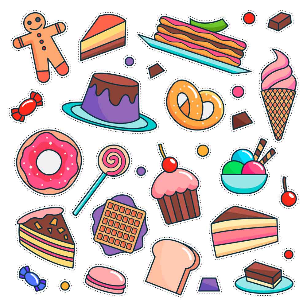Этот список можно продолжать до бесконечности, дополнять его своими рисунками, фантазиями, идеями. Предлагаем несколько «вкусных», динамичных, милых, восхитительных и, как говорят сегодня, «мимимишных» рисунков для украшения дневника.