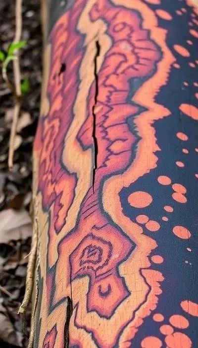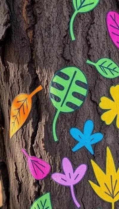 Рисование на коре упавших деревьев: если в лесу есть упавшие деревья, их стволы можно использовать в качестве холста для рисования мелками или натуральными красками. Это безопасный способ проявить свою креативность, не нанося вреда живым растениям.