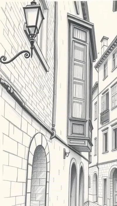 Колонны – декоративные элементы, добавляющие зданию величие. Колонны можно упростить до цилиндров. Учитывайте перспективу: диаметр колонны будет уменьшаться по мере удаления от зрителя. Добавьте простые линии, обозначающие капители и базы колонн. Не перегружайте рисунок деталями, особенно на заднем плане.