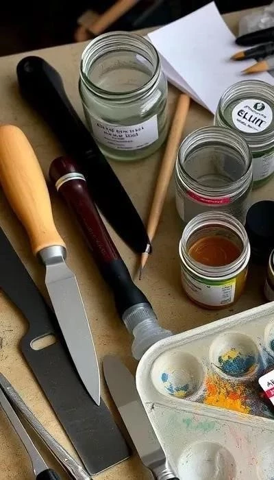 Не забудьте о других необходимых аксессуарах: палитре для смешивания красок, мастихине для создания фактурных мазков, растворителях для разбавления масляных красок и емкости для воды для акварели.