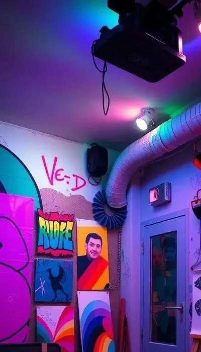 Неоновый свет играет важную роль в создании атмосферы арт-клуба. Неоновые вывески, граффити и инсталляции добавляют яркости и динамики, подчеркивая креативный характер пространства. Использование проекторов позволяет создавать интерактивные визуальные эффекты, реагирующие на музыку и движения посетителей. Важно также предусмотреть возможность регулировки освещения, чтобы создать различные настроения и акцентировать внимание на определенных элементах интерьера.