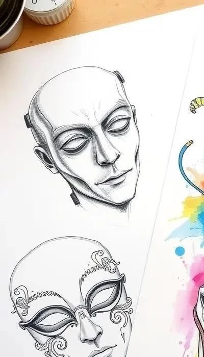 Освойте различные техники рисования масок! От карандашного скетчинга до акварельной живописи.