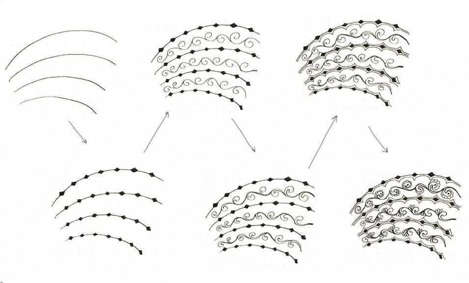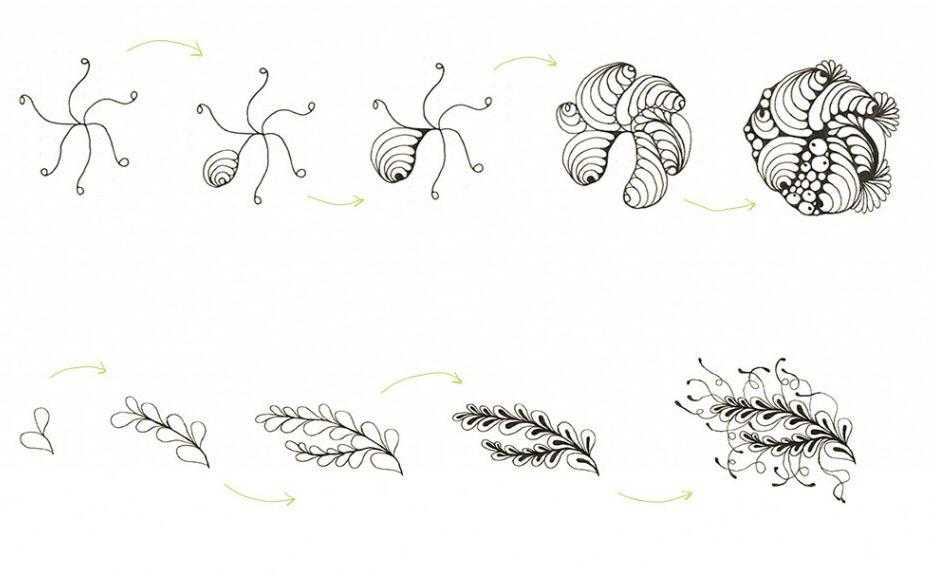 Можно создавать «сплетения» — так в зентанглах называют любые геометрические фигуры и формы, которые рисуются в созданных секциях. Уже нарисованное стирать нельзя. Также как нельзя надолго засиживаться над рисунком. Рисунок должен быть искренним и максимально спонтанным, утверждают авторы практики. Процесс рисование зентангла должен стать своего рода ритуалом, как, например, каллиграфические дальневосточные цереноналы.